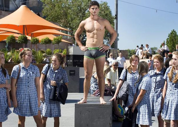 I was really impressed this week to see that the son of the ex-Premier of Victoria Steve Bracks has taken up modelling. Steve Bracks quite Parliament after problems with his family, including his son’s drink driving charges. Nick was spotted recently modelling in just a pair of Bond’s undies in preparation for Fashion Week coming up in Melbourne. There was a video of Nick strutting around half naked in the city but I cannot seem to find it now. So here are just a few pics to give you an idea of how beautiful this guy is.
